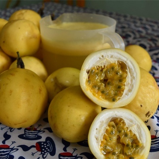 Maracujá Crioulo selecionado no vale do Ribeira por comunidades quilombolas. Sabor intenso, doce, pode ser consumido in natura, em sucos ou receitas. O chá das folhas tem efeito calmante.